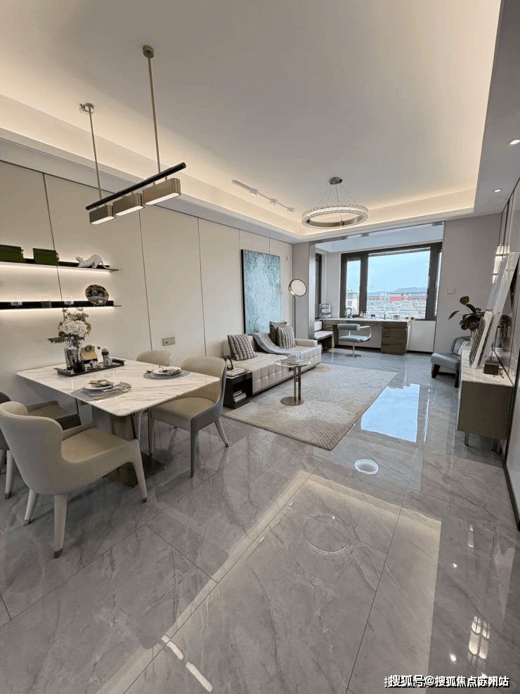 中建太泽之星丨藏湖:太湖畔四代宅,餐厅和客堂无缝毗连。